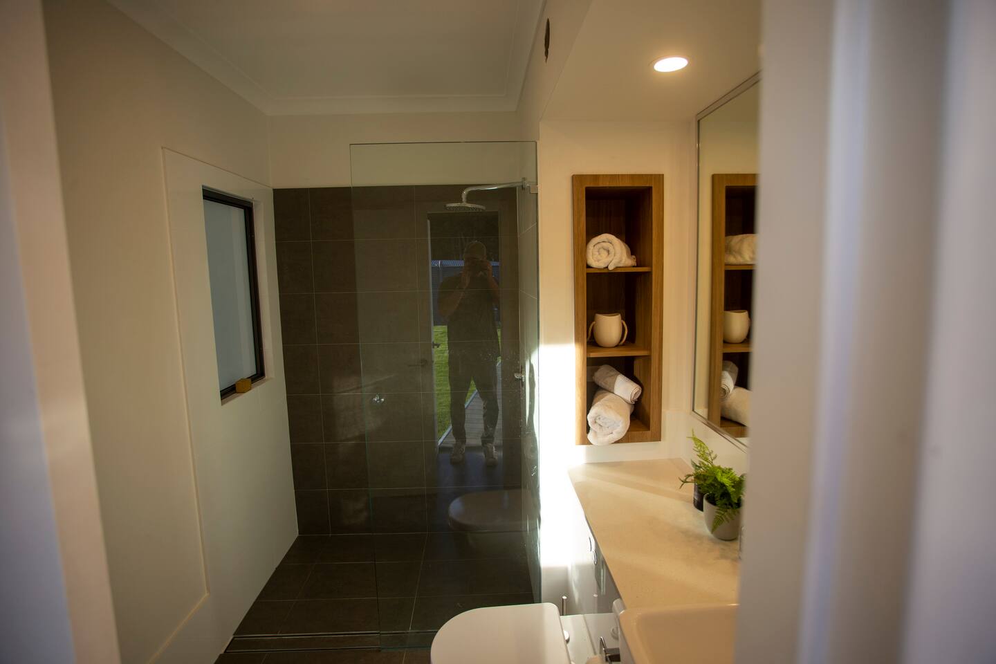 This self-contained ensuite studio Wabi Cabin is suitable for a couple, fully equipped with a mini-kitchenette. It has a separate driveway from the main house and has it's own car-parking space.